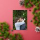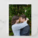 Modern wedding save the date card featuring a simple and minimal design with "Save the Date" in a duo font typography along with your names and date over your favourite vertical photo. The back has a square picture along with your personalized message. All text on the front is in real foil and the back is in black and white. In the design editing tool, the colour palette may be changed on the back, any of the text on the front may be changed to any ink colour and and gradient overlay may be removed.