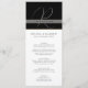 Elegant Chic Monogram Charcoal Black White Wedding Menu. Gorgeous sophisticated designer wedding menu with charcoal text on white featuring a striking pale grey monogram initial over black with family name over charcoal with thin antique gold coloured borders. Personalize with Bride & Groom’s Name, Wedding Date, Monogram Initial, Family Name, and Wedding Menu text. All text, fonts, and colours are customizable. We invite you to visit our store, Austen & Grace, to view the full wedding suite, matching products and more. Please contact us if you require any assistance.