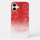 Chic Monogram Coral Glitter Ombre First Name iPhone Case