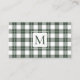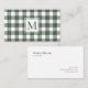 Easily add your monogram initial over a chic green and white plaid pattern. On the professional business card back, add your name, and customize the job title/specialty/company, website, and contact information. Perfect for a consultant or other professions.