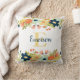 Trendy boho floral pillow in vibrant colours of navy blue, teal, peach, orange and yellow. Name and initial can be personalized. Makes a great gift.
