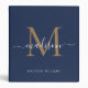 Chic Monogram Navy Blue Gold Script Office School Binder
