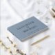 This chic dusty blue wedding guest book is the perfect way to cherish memories of your special day. It features your names in elegant and classic serif typography, monogrammed in silver foil, and your wedding date. Personalize with your photo on the back and add a custom title on the spine.