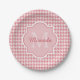 Chic Monogram Pink Houndstooth With Name Paper Plate