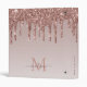 Chic Monogram Pink Rose Gold Glitter Drips Sparkle Binder