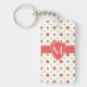 A chic Oblong Acrylic Keychain to personalize with your Monogram or Initials, with a pattern of Red, Green and Yellow Polka Dots on a White Background. Part of the Posh & Painterly 'Rangoli' collection, this pattern can be adjusted to fit any Keychain.