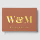 This chic and elegant terracotta wedding guest book features real gold foil, your monogram initials in large classic serif typography, your names and your wedding date, and a title on the spine.