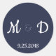 Perfectly chic customizable navy and white stickers with bride and groom monogram initials and wedding date
