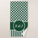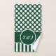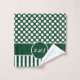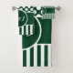Un pois chic monogrammed vert et blanc et un motif rayé décorent les serviettes de bain. Modifiez la couleur de remplissage et les initiales pour customiser l'élégant cadeau de ménage pour un couple. En outre, modifiez la police, la couleur de police ou la taille de police des initiales. N'oubliez pas de modifier la couleur de forme aussi. Pour obtenir de l'aide sur la personnalisation de la couleur et du design, contactez https://t.me/KBMD3signs_chat.