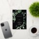 This gorgeous bridal shower invitation design features a gorgeous green botanical illustration and black background. The frame, "BRIDAL SHOWER", the bride's name, and date are all in real pressed foil. On the back you will find reply, gift registration, and hosted by details. This elegant design is a fabulous choice for many styles of events, from classic to boho. You can customize this design even further by adding a photo to the backer. Foil is available in gold, silver, or rose gold and absolutely shines! Select real foil for your bridal shower invitations to add that wow factor!!