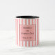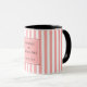 MOMMY'S 1ST MOTHERS DAY TEXT MUG. 04 BLUSH PINK/WHITE STRIPES WITH BLUSH PINK TAG AND BLACK TEXT.