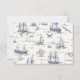 Chic Nautical Toile de Jouy Bow Wedding RSVP Card