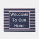 Perfectly chic, and classic navy and blush pink customizable Welcome To Our Home doormat