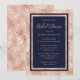 Elegant personalized navy blue and rose gold bridal shower invitation with modern script. Easily personalize online. Matching items available to complement these luxury navy blue and rose gold glitter bridal shower invitations.