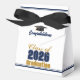 Personalize your own navy blue and gold high school Class of 2026 graduate party favor box for a college graduation party. Cool varsity letters for the year on great custom senior gift boxes.