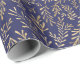 Chic Navy Blue Gold Foliage Pattern Wrapping Paper