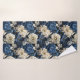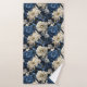 Chic Navy Blue Ivory Gold Flowers Bath Towel
