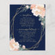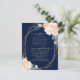 Chic Navy Blue Peach Floral Gold Wedding Details Enclosure Card