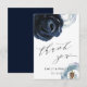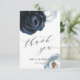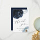 Chic Wedding Thank You Card featuring painted watercolor peonies in navy blue and white.