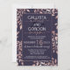 Chic Navy Blue Rose Gold Floral Leaves Engagement Invitation
