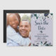 Chic Navy Blue White Flowers Wedding Save the Date Magnetic Invitation
