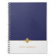 Keep track of all important notes in this chic notebook. Personalize with your name or company name. It features navy blue and white with decorative gold dots divider.