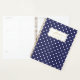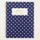 This planner features chic navy blue and white polka dots pattern on both sides. Personalize with your name or text of your choice in gold colour.