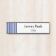 This Hanging Name Plate features the signature Chic Navy Blue & White Stripes on a crisp white insert, providing a sophisticated welcome throughout your workplace. Designed for ultimate versability, these signs transition seamlessly from doors to walls, making them perfect for any place that has space.