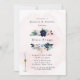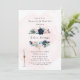 Design features a printed coloured floral element in shades of navy blue, dusty blue and blush pink watercolor florals with a watercolor canvas background. Calligraphy or type writing with the design artwork. This is a mix and match collection piece. Great for your wedding celebrations!