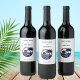 Add a stylish touch to your celebration with this personalized coastal wedding wine label, perfect for a beach wedding or tropical summer event. This elegant label features a chic graphic design of a navy blue palm tree, the rising sun above the ocean, and peaceful birds in flight, all framed within a classic navy circle set against a crisp white background. Ideal for a palm tree wedding by the sea, this design captures the serene beauty of a coastal setting with a modern, sophisticated flair.