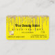 This is the perfect business card for a trendy, stylish, girly, and modern businesswoman. This glamourous and chic design features faux printed sparkly gold glitter drips on top of a simple neon yellow background. The typography is an elegant cursive script with a modern serif font to match. It's chic, pretty, unique, and luxurious; the perfect way to advertise your business and stylize your marketing and advertisement material for your customers.