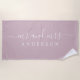 Chic pastel purple monogrammed beach towel with the large text Mr and Mrs in white elegant script. You can customize this elegant beach towel with your married name. Perfect gift for the newlywed couple. Exclusively designed for you by Happy Dolphin Studio.