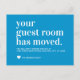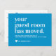 Your Guest Room Has Moved Moving Faire-part avec un script moderne et une typographie de police et un coeur. Les couleurs peuvent être changées facilement en cliquant sur personnaliser, puis cliquez pour customiser plus loin pour voir notre sélecteur de couleurs. Contactez notre magasin si vous avez besoin d'aide.