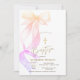 Chic Ombre Bow Gold Cross Baptism Invitation