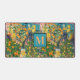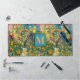 Chic orange blue turquoise sicilian citrus collage floral tiles monogram Desk Mat. Chic floral botanical citrus garden pattern inspired by the summer bright italian themed art of majolica. Beautiful Sicilian ceramic tiles in pink yellow and blue. A fun style bright design for home decor, clothes, mobile and Ipad cases, invitations and much more. You can change all text colours and fonts, click to customize further underneath the text customisation area this will take you into the design tool. A unique gift for birthdays, holidays and any special occasion. Whether for valentines day, Christmas or as a gift in general it makes a great gift idea
