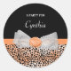 Chic Orange Cheetah Print Cute Rose Bow Party Name Classic Round Sticker