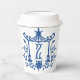 These chic pagoda monogram cups are perfect to use for entertaining and make an excellent hostess gift. The pagoda design and the monogram are in a navy blue on white.