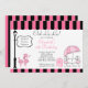 Start you girl birthday party off right with our stylish & chic pink poodle kids birthday party invitations. Our cute pink poodle in paris invite features a cute little pink poodle with a a cafe table and a hot pink & black boutique awning with boutique sign. The poodle girls birthday party invitation features a coordinating pink & black stripe back with a french poodle . Visit our shop for matching thank you note cards, birthday stickers, thank you stickers and postage stamps. © Babystar Designs