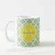 A chic pastel spring green quatrefoil mug with a bright yellow monogram badge you can personalize by adding your name and initial to. This is part of the Nile Green and Meadow Lark Yellow Spring Collection.