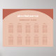 Horizontal wedding seating chart. The chart in the example has 10 tables and 100 names, but you can easily edit it to suit your needs with the design tool. Minimalist yet striking: adopt this slightly retro elegant typographic design for your wedding stationery, with a modern arch design and terracotta & burnt orange colours. Fully customizable text, colours and backgrounds.