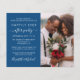 Chic budget-friendly classic blue elopement / private wedding announcement with a wedding reception invitation that features your photo and "Happily Ever After Party" in modern white typography and a stylish white script with swashes. Personalize your party or reception details and add your names in a signature-like script.