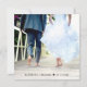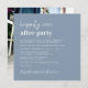 Chic dusty blue square wedding reception invitation featuring "Happily Ever After Party" in a contemporary white script and bold minimal modern white lettering, your personalized invitation and your names in a signature-like script. The back features your photo overlayed with your names and date(s) joined together by a heart (if your wedding and reception dates are different, keep your first names on the top line and your two dates separated by the heart on a second line).