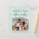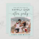 Budget-friendly mint green save the date announcement for a wedding reception or party after your elopement or private wedding. The front features your wedding day photo and "Save the Date for Our Happily Ever After Party" in simple typography and a calligraphy script with swashes. Add your first names and reception date. On the reverse side, personalize your announcement and add the party or reception save the date details and add your names in a signature-like script.