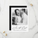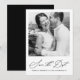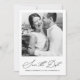 Élégante calligraphie et photo au dos de la carte d'annonce de mariage save the date.