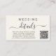 Chic light cream wedding details enclosure card featuring "details" in an elegant swash script. Input your wedding website address to create a QR code that your guests can scan for all of your details such as directions and accommodations and to RSVP online. The back features your photo overlayed with your first names and wedding date joined together with a heart.