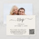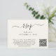 Chic light cream wedding RSVP card featuring "rsvp" in an elegant calligraphy script with swashes. Input your wedding website address to create a QR code for your guests to scan to RSVP online. The back features your photo overlayed with your names and wedding date joined together with a heart.