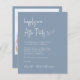 Budget-friendly dusty blue wedding reception invitation featuring "Happily Ever After Party" in a chic white script, your invitation in classic white serif typography and your names in a signature-like script. On the back, upload your photo and input your wedding website address to create a QR code that your guests can scan to RSVP online and obtain additional details.