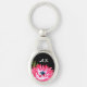 Chic Pink and Black Floral With Monogram Initials Keychain