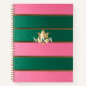 Elegant Customizable Monogrammed Notebook and Planner – Chic Pink and Green Striped Design