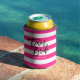 Chic Pink and White Stripes Black Team Bride Can Cooler